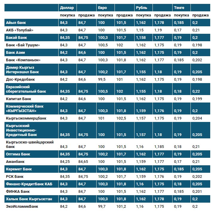 Курс доллара в коммерческих банках Кыргызстана на 18 июня