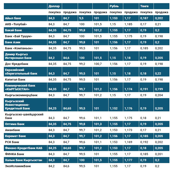 Курс доллара в коммерческих банках Кыргызстана на 21 июня