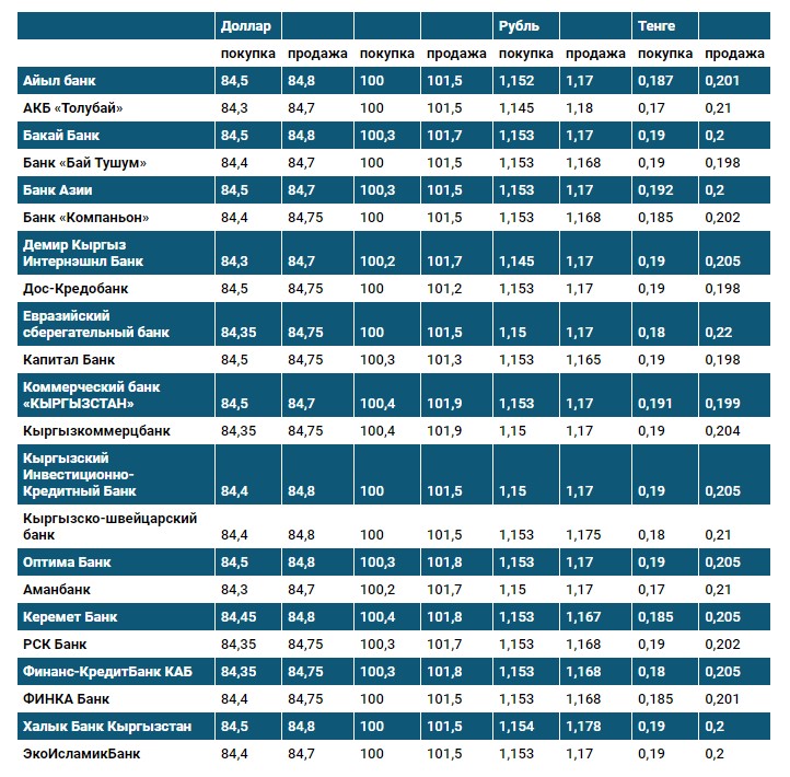 Курс доллара в коммерческих банках Кыргызстана на 23 июня