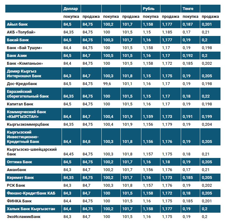 Курс доллара в коммерческих банках Кыргызстана на 24 июня