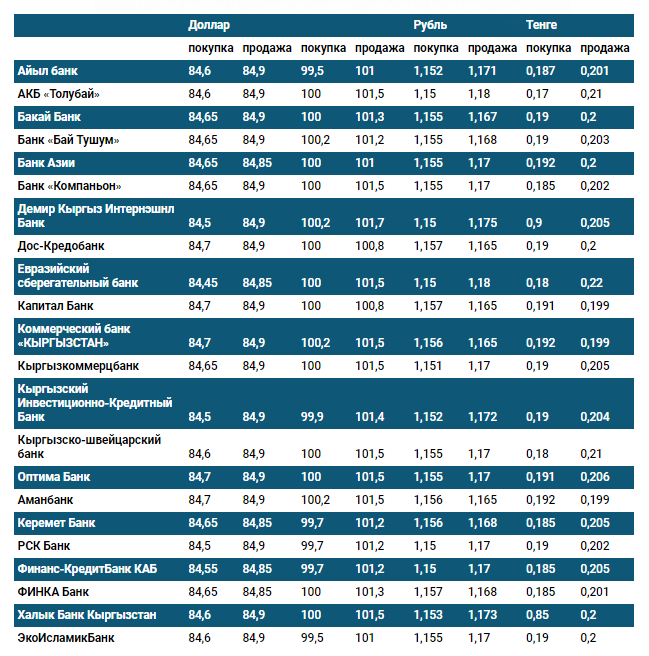 Курс доллара в коммерческих банках Кыргызстана на 1 июля