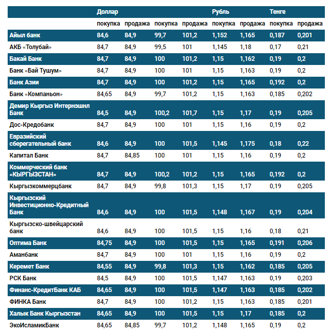 Курс доллара в коммерческих банках Кыргызстана на 6 июля
