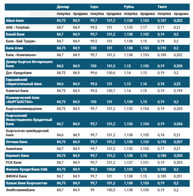 Курс доллара в коммерческих банках Кыргызстана на 15 июля