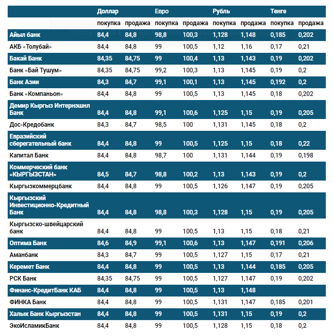 Курс доллара в коммерческих банках Кыргызстана на 21 июля