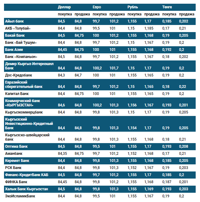 Курс доллара в коммерческих банках Кыргызстана на 4 августа
