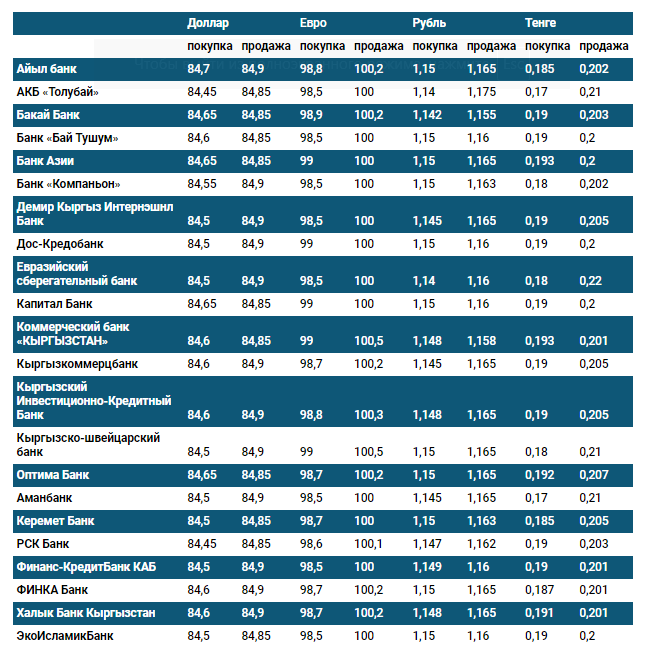 Курс доллара в коммерческих банках Кыргызстана на 12 августа