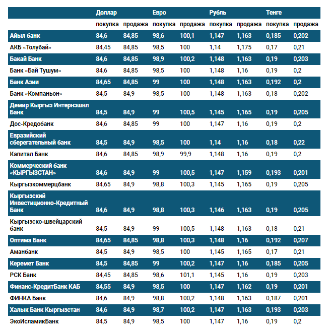 Курс доллара в коммерческих банках Кыргызстана на 13 августа