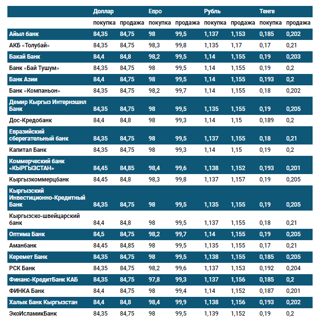 Курс доллара в коммерческих банках Кыргызстана на 19 августа