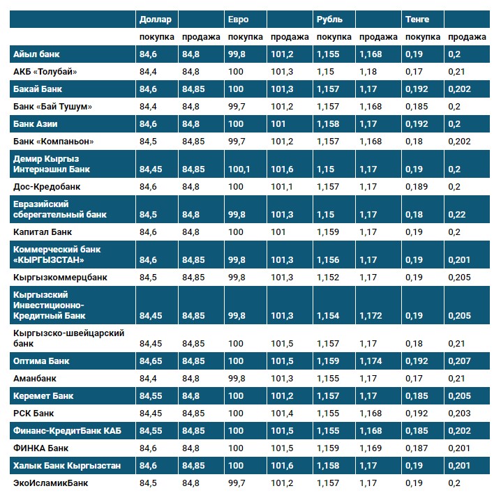 Курс доллара в коммерческих банках Кыргызстана на 3 сентября