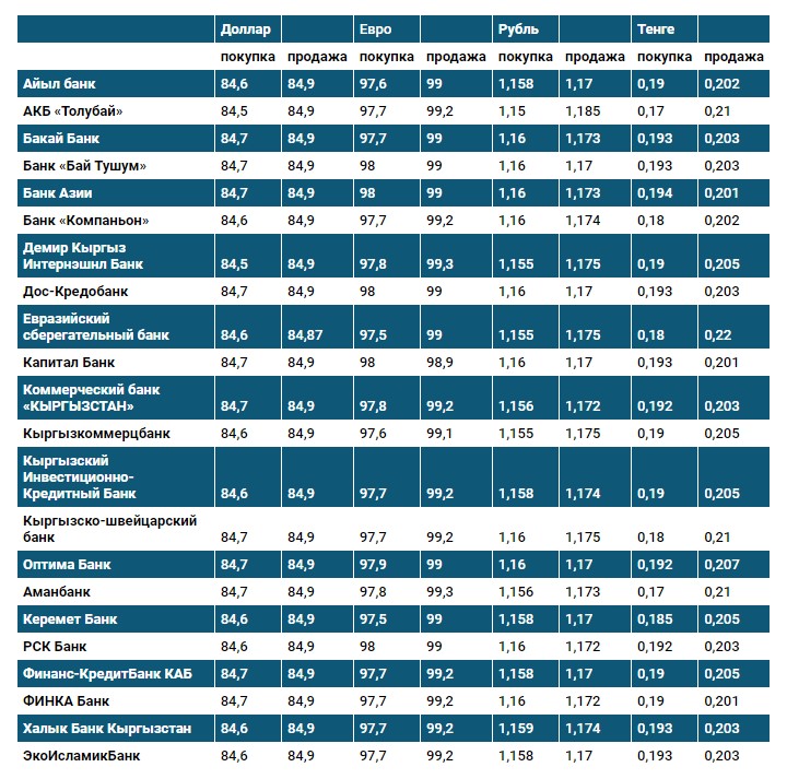 Курс доллара в коммерческих банках Кыргызстана на 4 октября