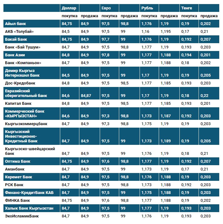 Курс доллара в коммерческих банках Кыргызстана на 12 октября