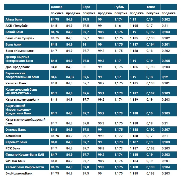 Курс доллара в коммерческих банках Кыргызстана на 14 октября