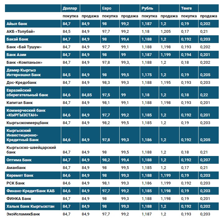 Курс доллара в коммерческих банках Кыргызстана на 19 октября