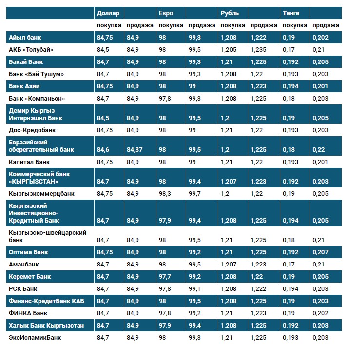 Курс доллара в коммерческих банках Кыргызстана на 26 октября