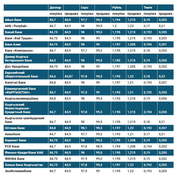 Курс доллара в коммерческих банках Кыргызстана на 28 октября