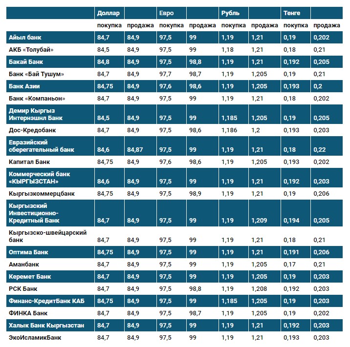 Курс доллара в коммерческих банках Кыргызстана на 1 ноября