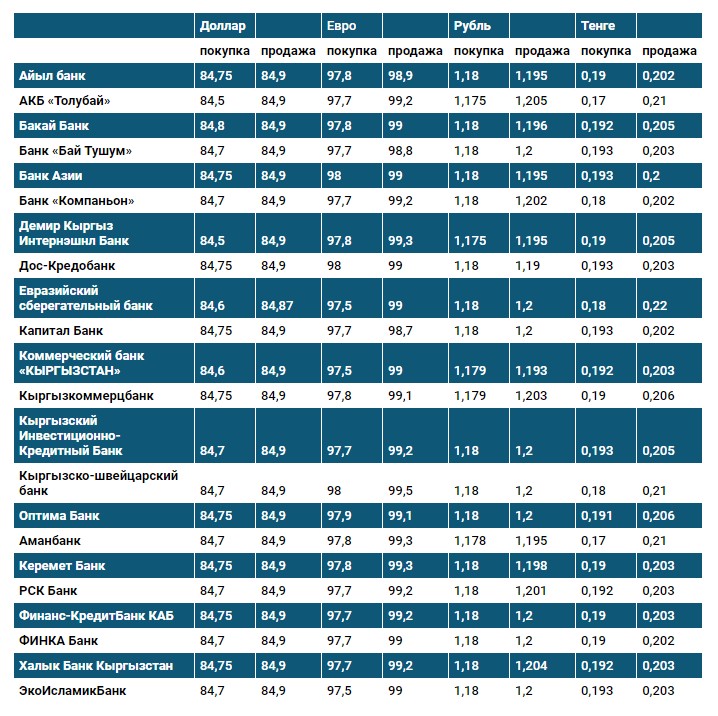 Курс доллара в коммерческих банках Кыргызстана на 2 ноября