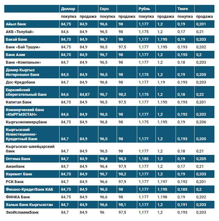 Курс доллара в коммерческих банках Кыргызстана на 12 ноября