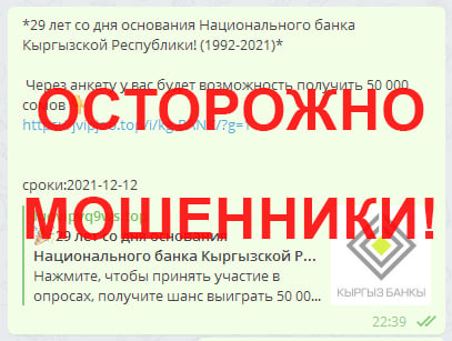Через социальные сети и мессенджеры распространяется информация, что якобы Национальный банк проводит опросы и платит за них. Сообщается также, что по итогам такого опроса можно получить вознаграждение в 50 тысяч сомов.