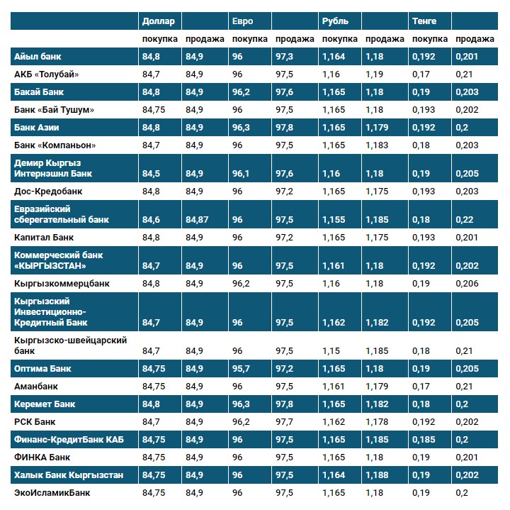 Курс доллара в коммерческих банках Кыргызстана на 16 ноября