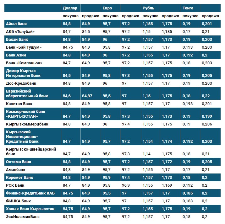 Курс доллара в коммерческих банках Кыргызстана на 19 ноября