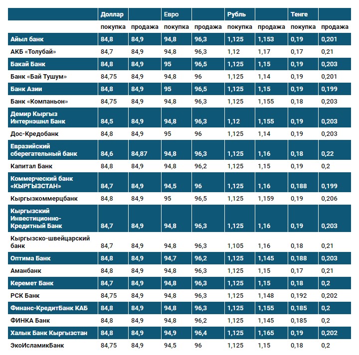 Курс доллара в коммерческих банках Кыргызстана на 23 ноября