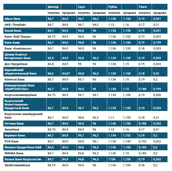 Курс доллара в коммерческих банках Кыргызстана на 24 ноября