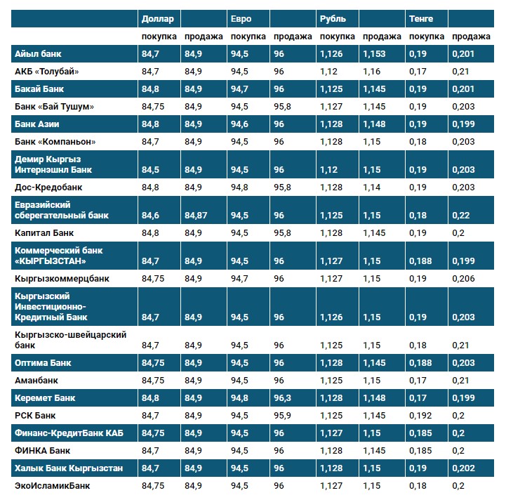 Курс доллара в коммерческих банках Кыргызстана на 25 ноября