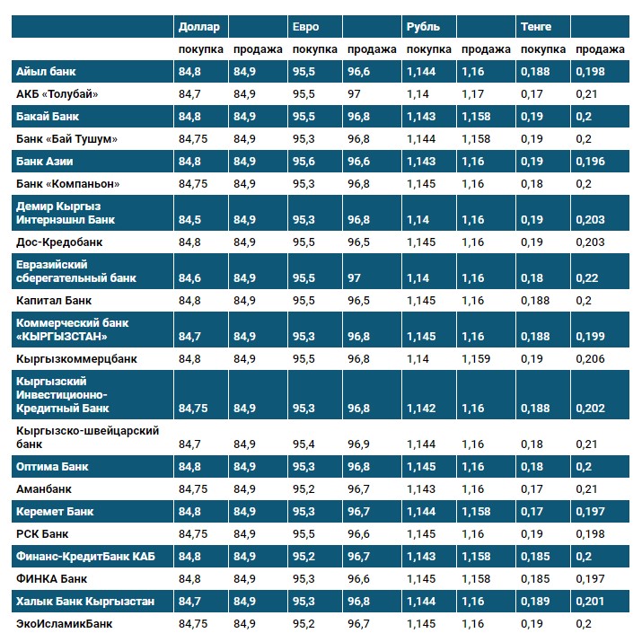 Курс доллара в коммерческих банках Кыргызстана на 6 декабря