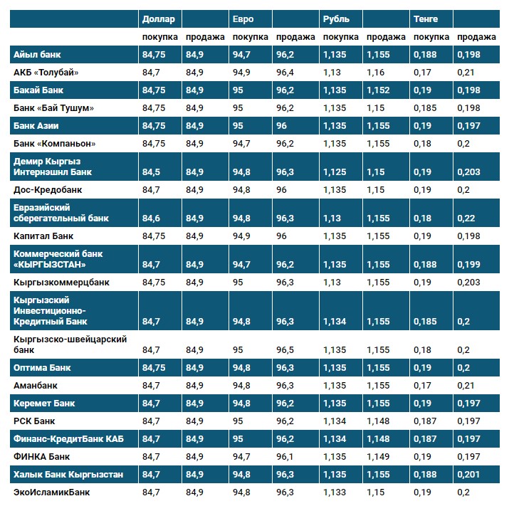 Курс доллара в коммерческих банках Кыргызстана на 20 декабря