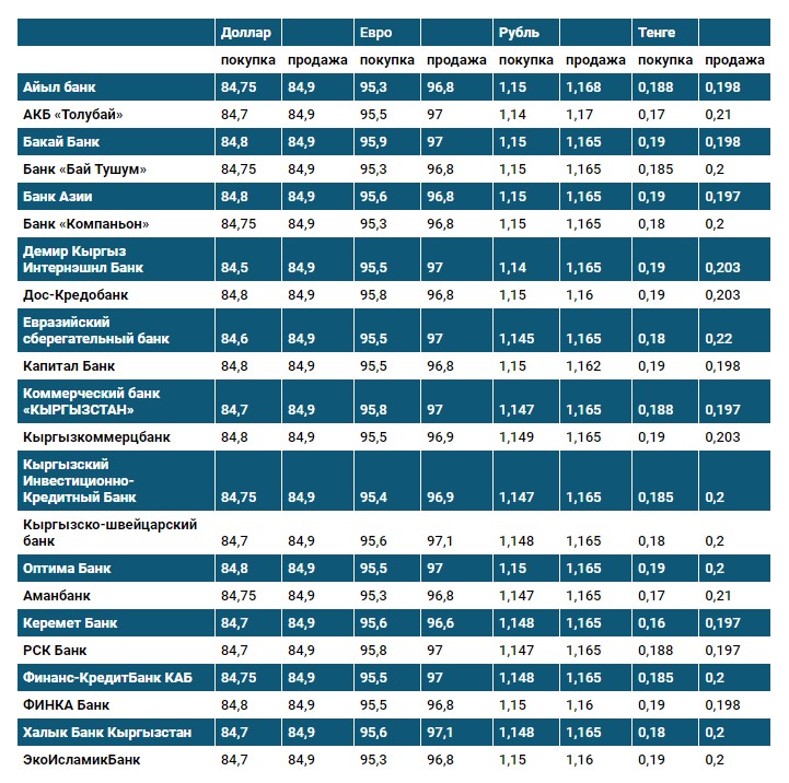 Курс доллара в коммерческих банках Кыргызстана на 27 декабря