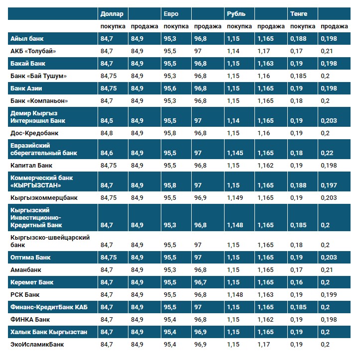 Курс доллара в коммерческих банках Кыргызстана на 28 декабря