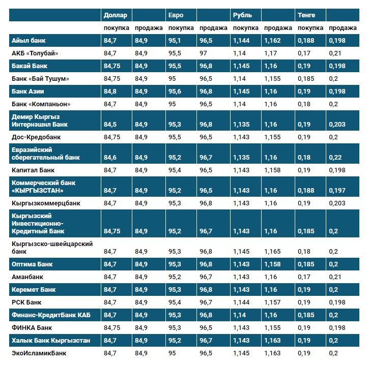 Курс доллара в коммерческих банках Кыргызстана на 29 декабря
