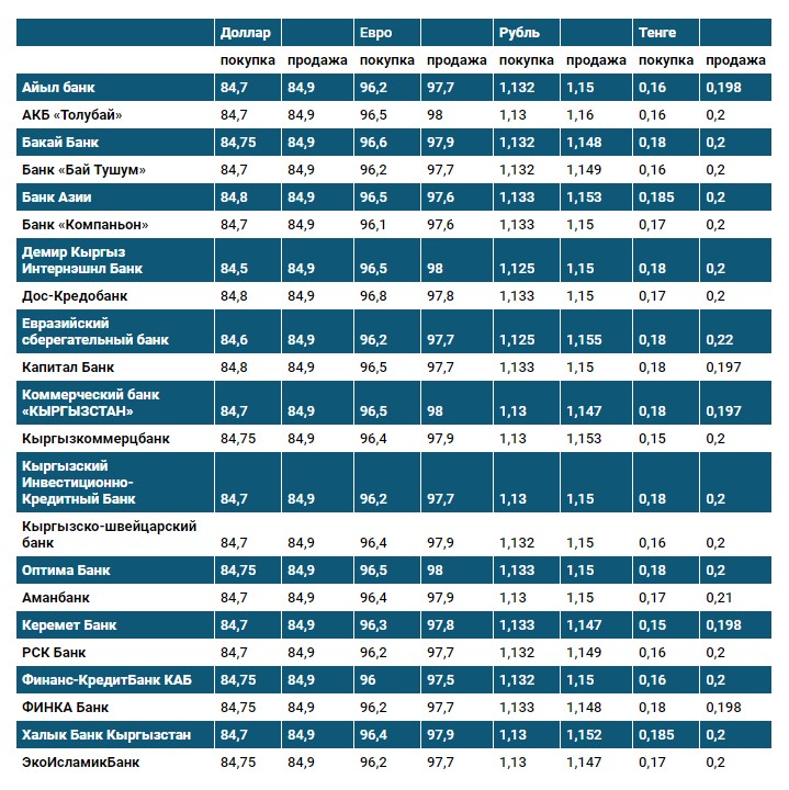Курс доллара в коммерческих банках Кыргызстана на 13 января