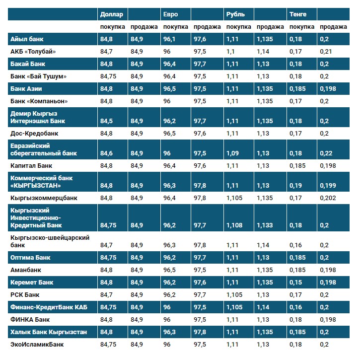 Курс доллара в коммерческих банках Кыргызстана на 18 января