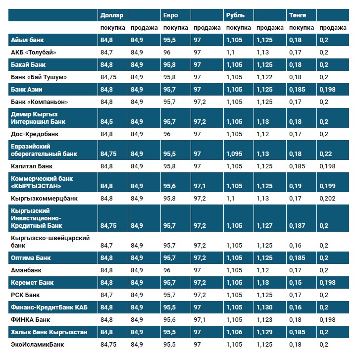 Курс доллара в коммерческих банках Кыргызстана на 20 января