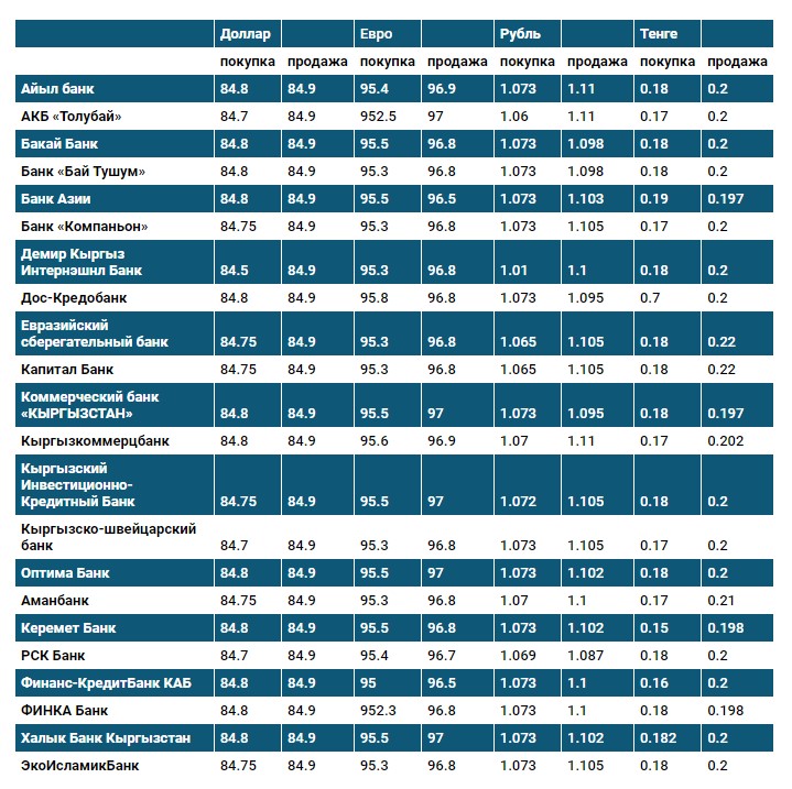 Курс доллара в коммерческих банках Кыргызстана на 26 января
