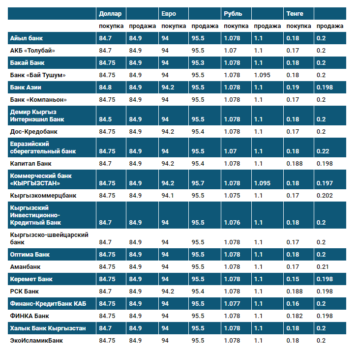 Курс доллара в коммерческих банках Кыргызстана на 28 января