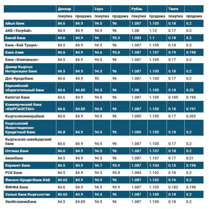 Курс доллара в коммерческих банках Кыргызстана на 1 февраля