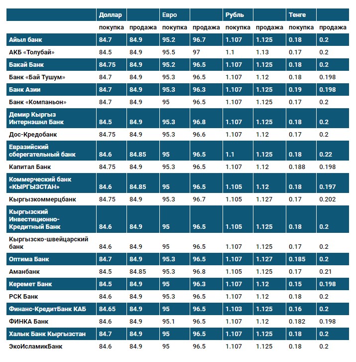 Курс доллара в коммерческих банках Кыргызстана на 3 февраля