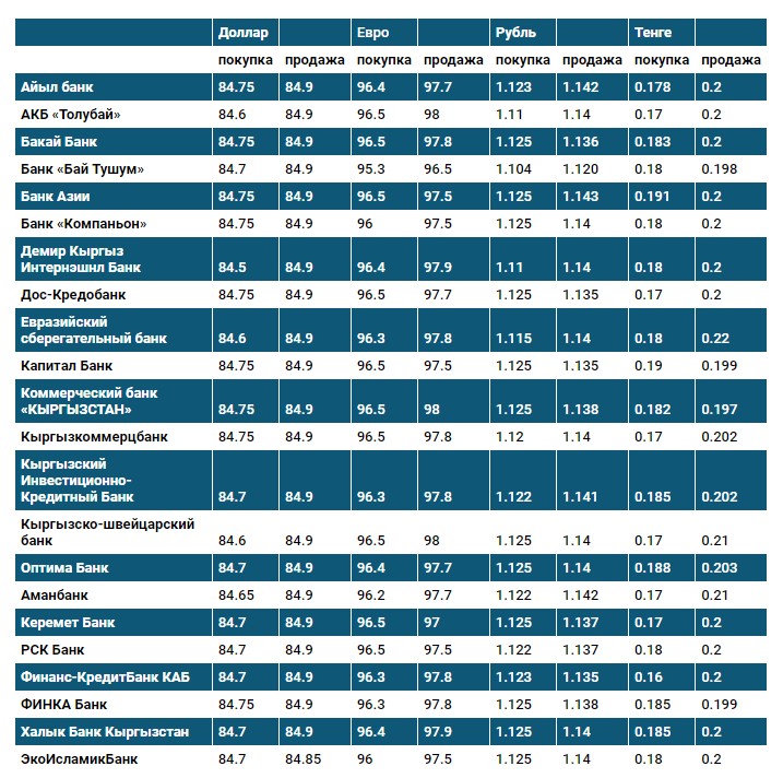 Курс доллара в коммерческих банках Кыргызстана на 9 февраля