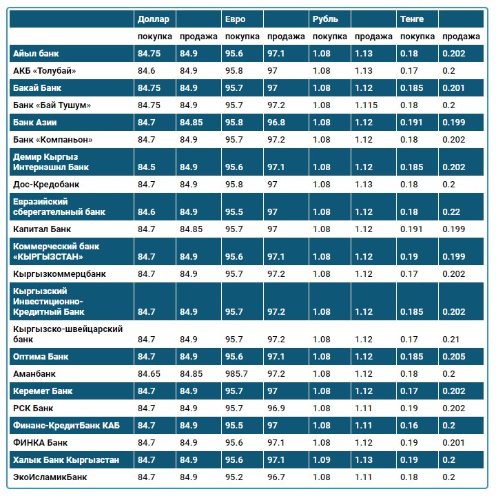 Курс доллара в коммерческих банках Кыргызстана на 21 февраля