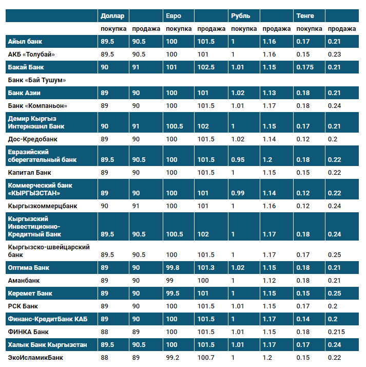 Курс доллара в коммерческих банках Кыргызстана на 25 февраля