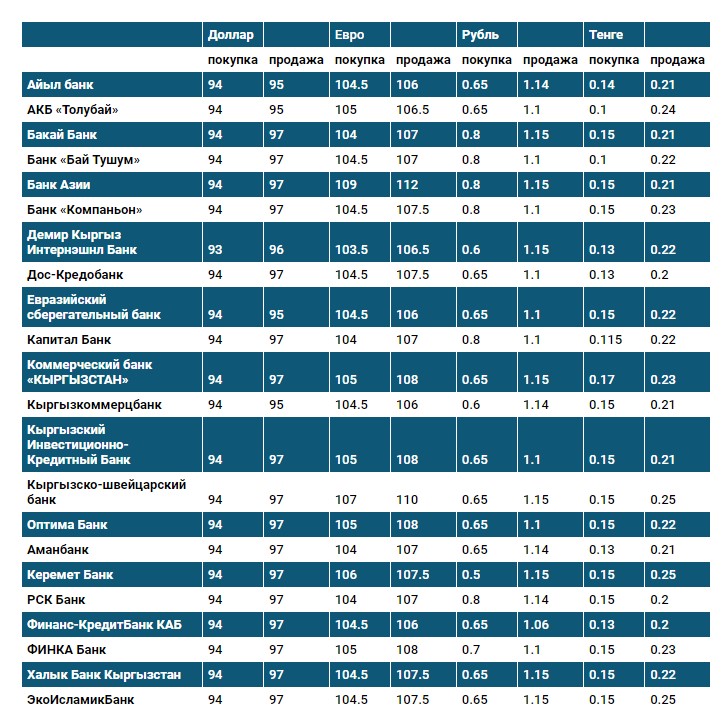 Курс доллара в коммерческих банках Кыргызстана на 28 февраля