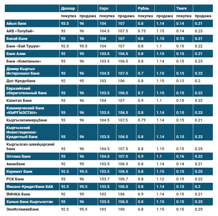 Курс доллара в коммерческих банках Кыргызстана на 1 марта