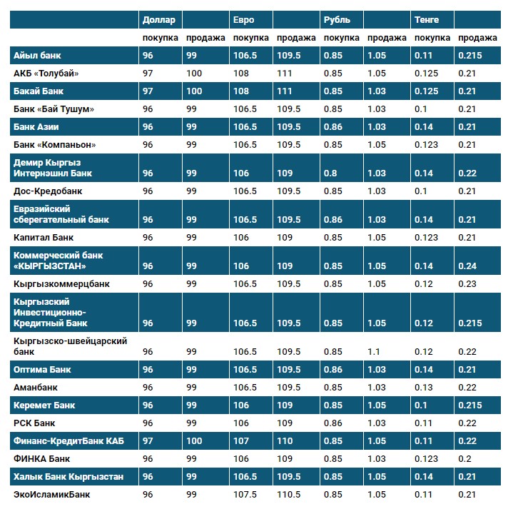 Курс доллара в коммерческих банках Кыргызстана на 22 марта