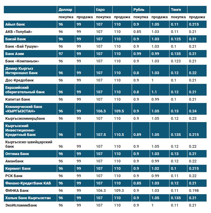 Курс доллара в коммерческих банках Кыргызстана на 23 марта