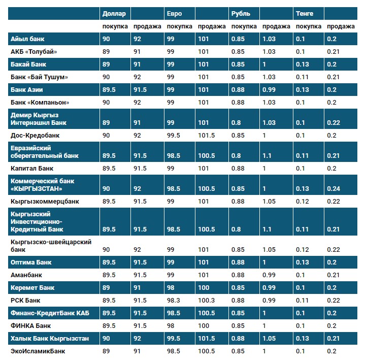 Курс доллара в коммерческих банках Кыргызстана на 28 марта