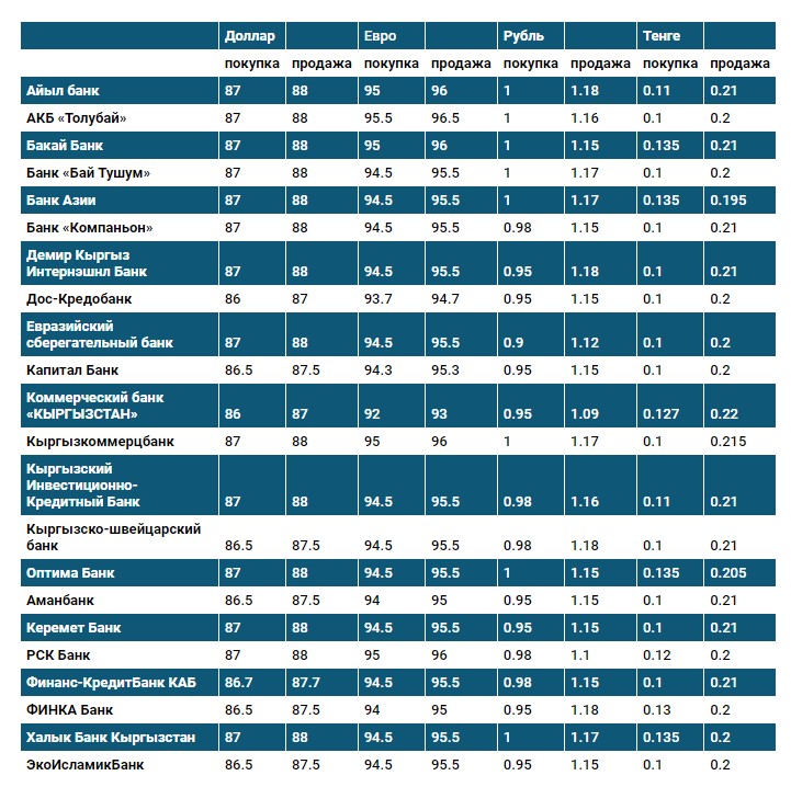 Курс доллара в коммерческих банках Кыргызстана на 8 апреля