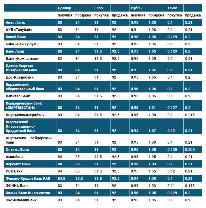 Курс доллара в коммерческих банках Кыргызстана на 14 апреля
